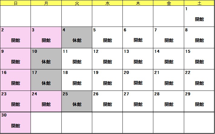 休館日/毎週月曜日 (祝日の場合は翌平日) 年末年始 (12月28日~1月4日)