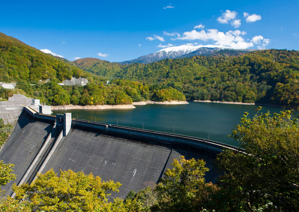 7発電所は,日本初の超高圧導水トンネルや,最高落差470m,最大出力6万8900kWのペルトン水車,最大出力4万200kWのフランシス水車の採用など記録づくめの規模でした。有峰盆地を利用したダムの総貯水容量は2億2300万㎥規模の重力式コンクリートダムで,戦時中に富山県営電気が着手して中断したままになっていたコンクリートを包む形での建設は国内外の注目を浴び,1960年(昭和35)には世界ダム会議の視察団も訪れました。