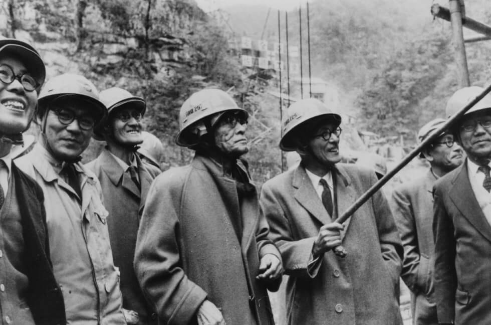 山田昌作は計画段階から何度も現地を踏査し,工事中も現場を訪れては作業員を激励しました。がんの手術直後に特製の輿に乗って訪れたこともあります。北陸電力発足から8年で20か所にも及ぶ電源開発を牽引してきた初代社長山田昌作は,1959年(昭和34),計画段階から足繁く通った有峰ダムの第一次湛水,和田川第一・第二発電所の運転開始を見届けると同年9月に社長を辞任し,四十有余年に及んだ電気事業から身を引きました。
