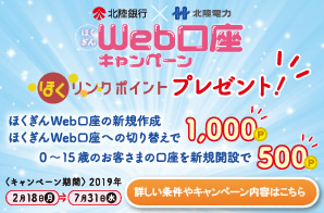 北陸銀行×北陸電力 ほくリンクポイントプレゼント!ほくぎんWeb口座キャンペーン
