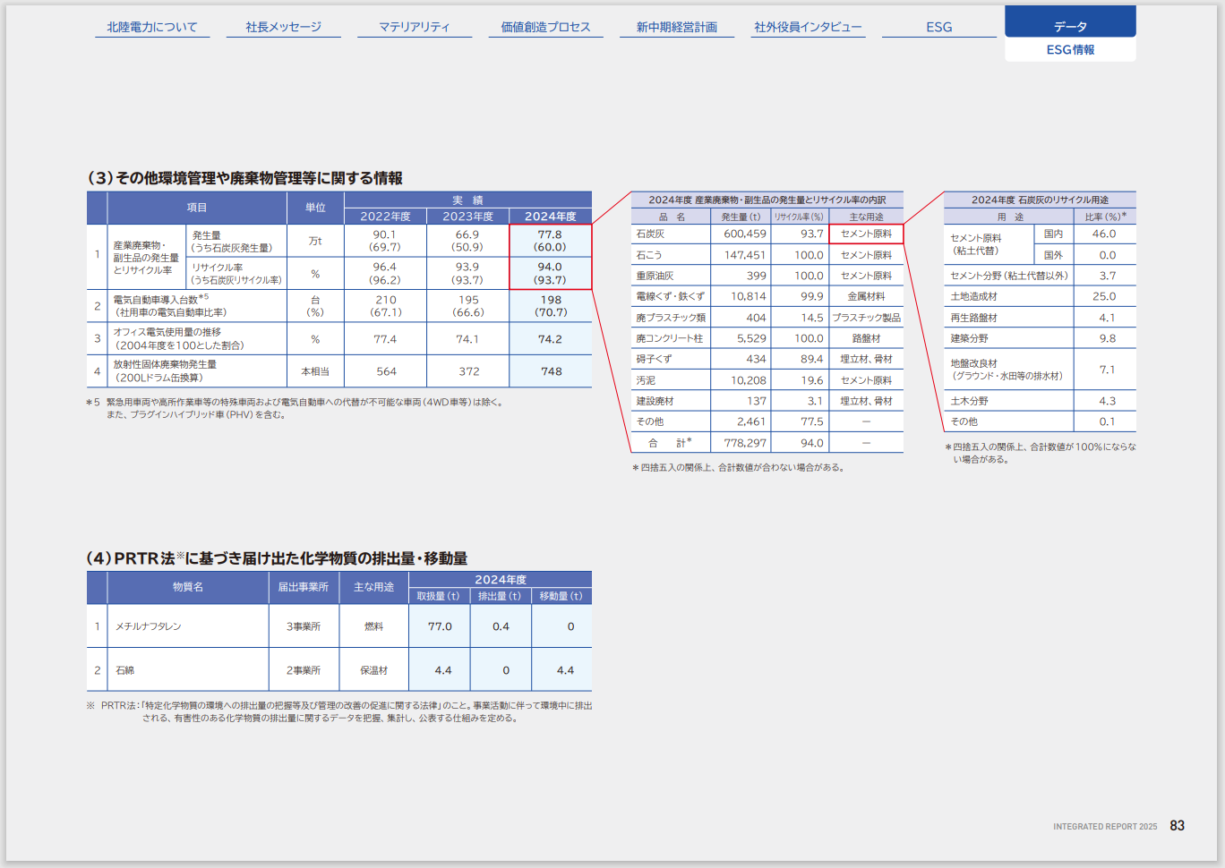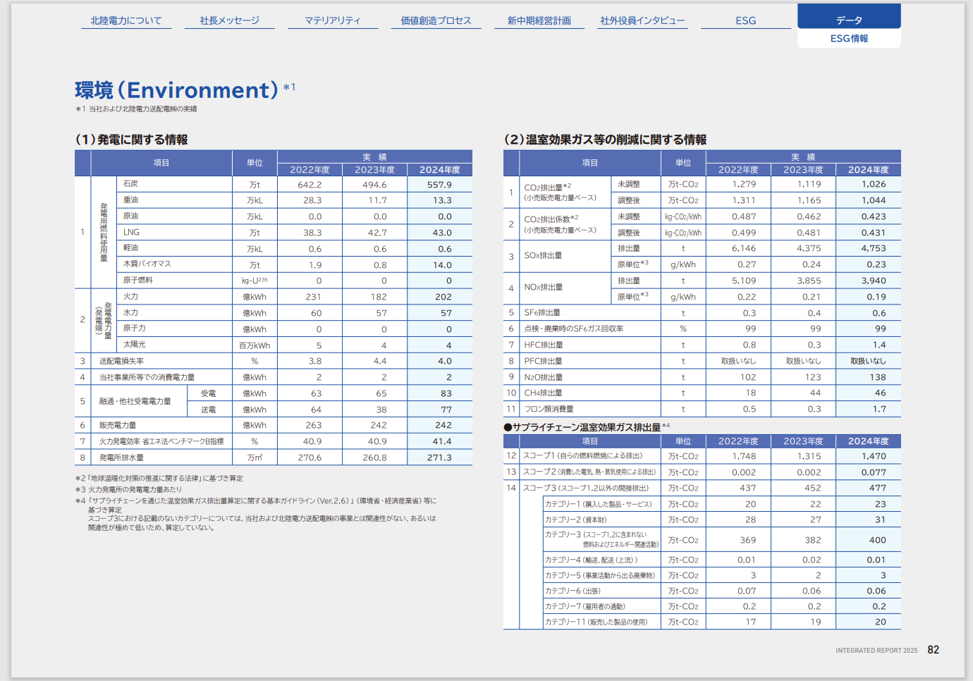 北陸電力グループ統合報告書2025 (2025年9月発行) 環境データ