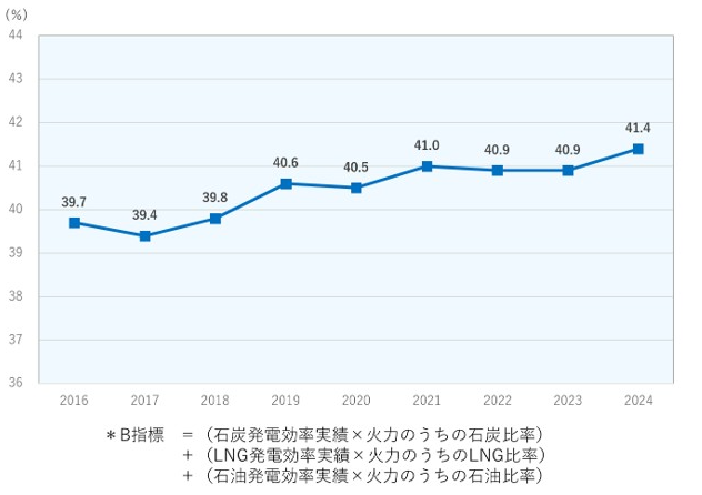 火力総合発電効率(省エネ法ベンチマークB指標)の推移