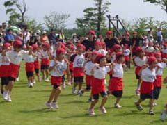 優勝を目指して、競技に参加する子どもたちはもちろん、見守る親も真剣です。「ガンバレーッ」「おちついてー」「行けー行けー」、芝生いっぱいに声援が飛び交っていました。