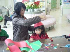 クリスマス日替わり工作「かべ飾り工作」、「ハット工作」、「ゆらゆらサンタさん」も好評で、みんな楽しんで作っていました。