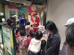 クイズラリーの途中、突然現れたサンタクロースにチビッコ達は大喜びで、元気よく「メリークリスマス」と言ってサンタからプレゼントをもらいました。