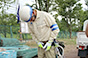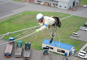 チームの中での連携はもちろん、一人ひとりの経験や訓練で身につける技術力も必要だ。送電線接続部のボルトの締め付けは、弱すぎても、逆に強すぎてもいけない。決められた強さに締められているか、直径約2.5cmほどの不安定な送電線の上に身を乗り出し一本ずつ点検する。腕力と握力だけで1本の送電線の上を移動する「素乗り」は、まさに繰り返しの鍛錬で体得した技術だ。また、高所ゆえ突然の風などで予想以上に送電線が揺れることもある。地上50メートルの送電線の上では、張り詰めた緊張感の中で平常心を保てるよう心がけている。「6年経験してようやく一人前。19年目の私でも、まだベテランの域ではない」と語る。